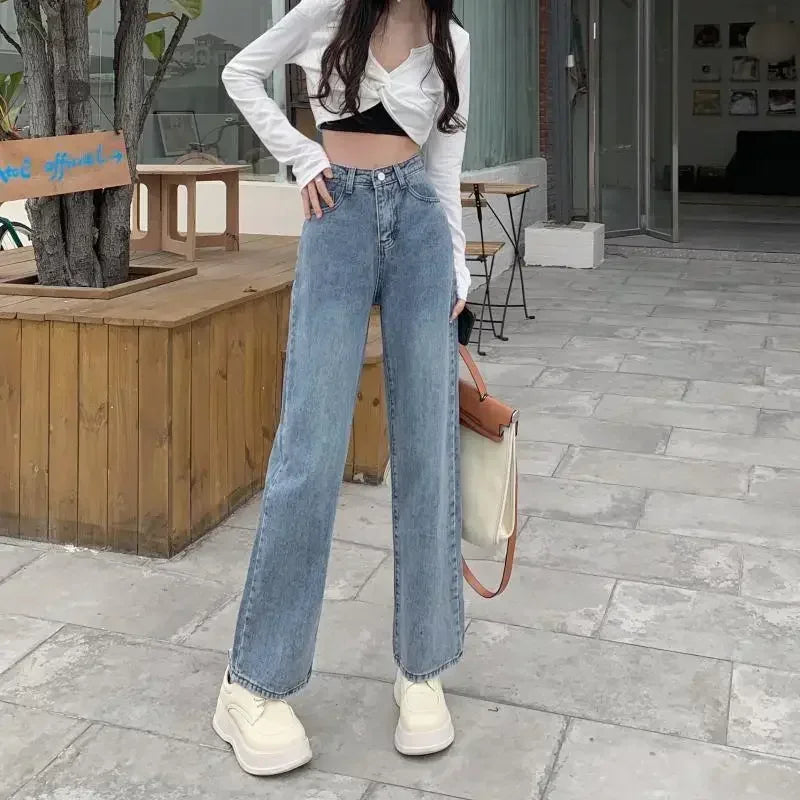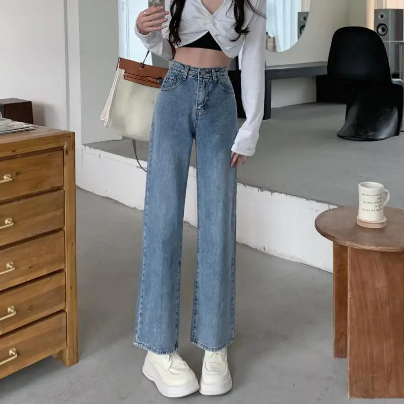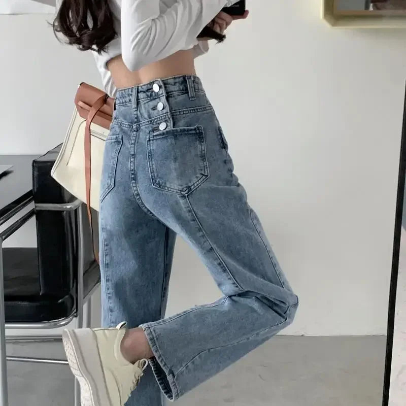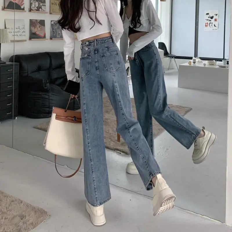 Women Denim Pants 2025 Spring Autumn Straight Jeans Vintage Fashion Female Solid High Waist Jeans Casual Trousers Wide Leg Pants