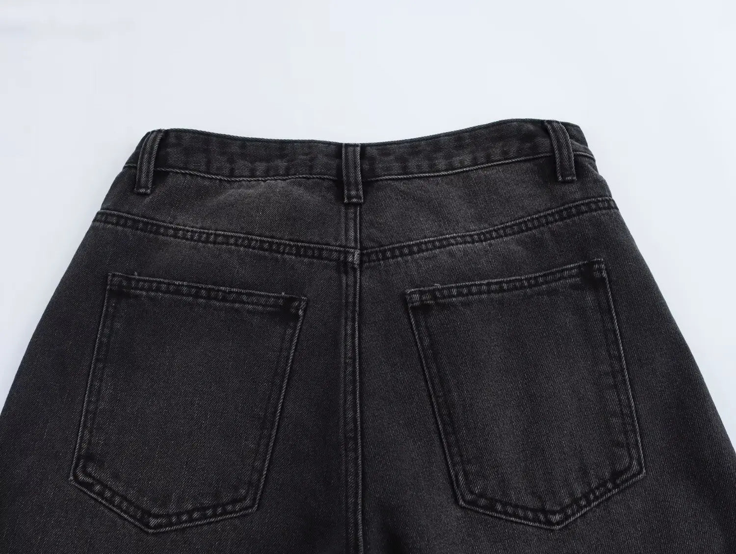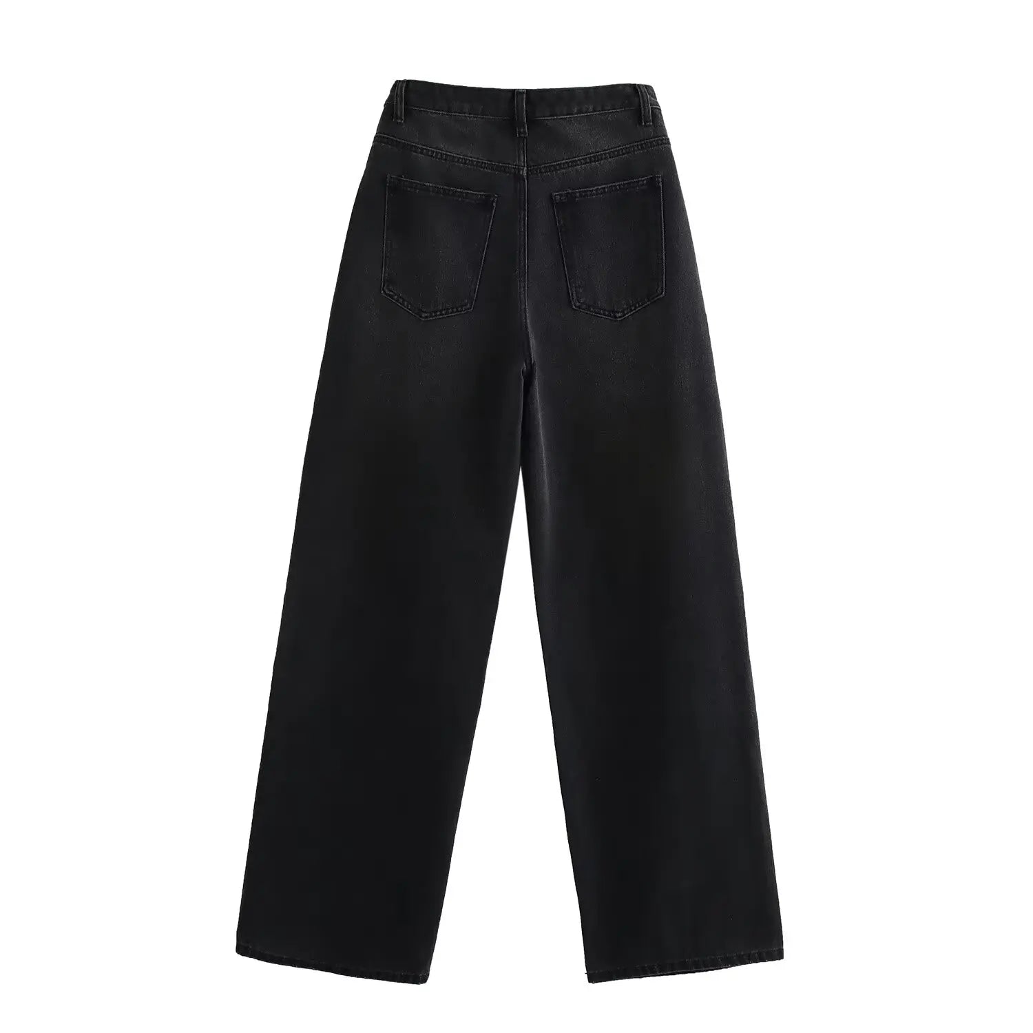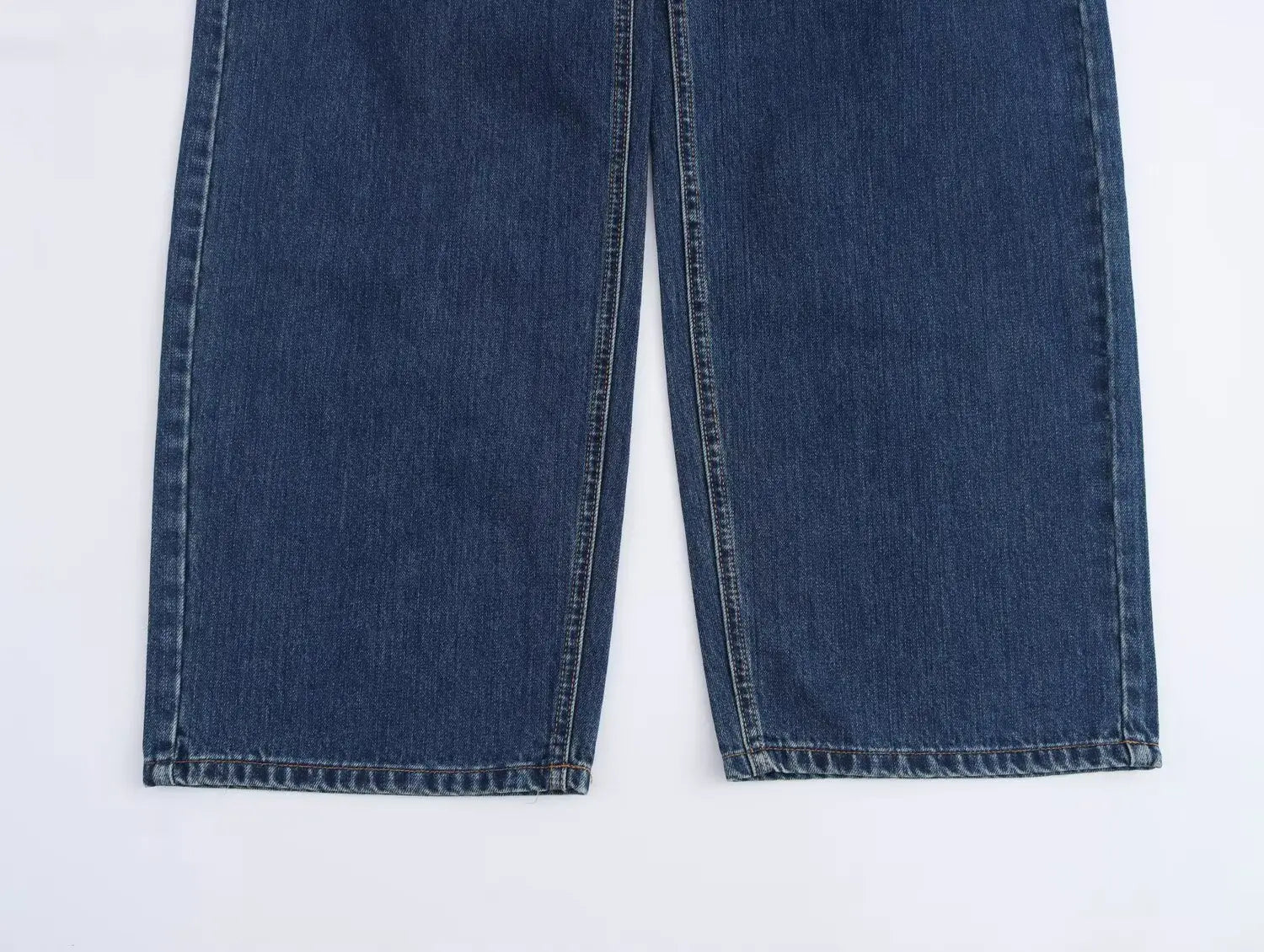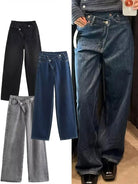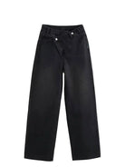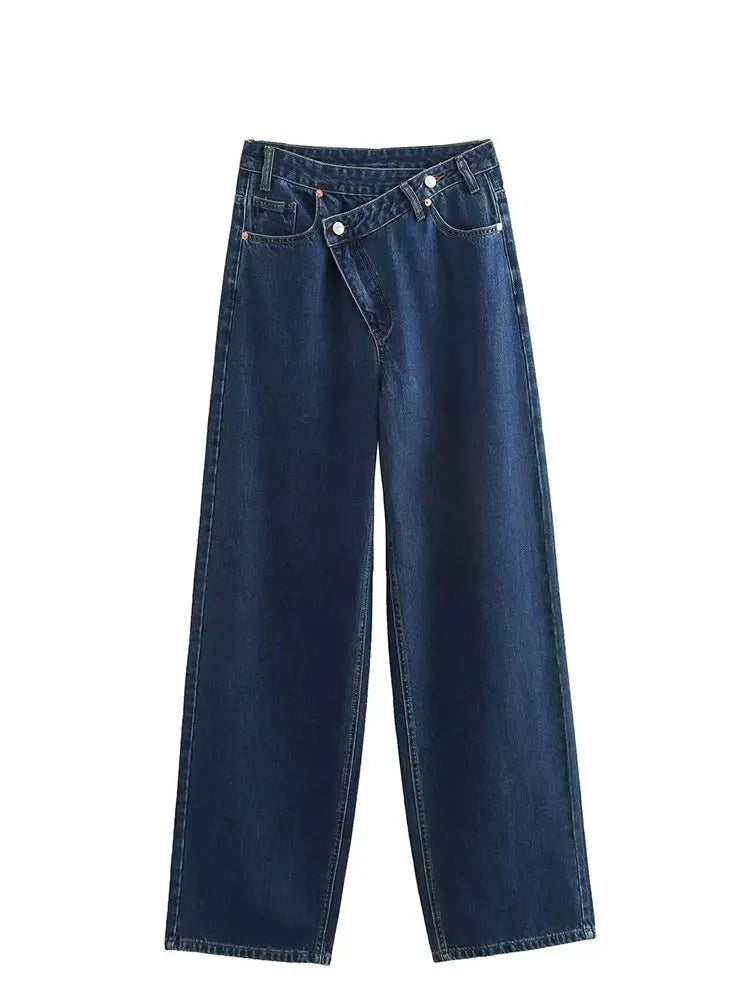 Women's Trousers Denim Solid Asymmetric High Waist Straight Long Pants Lady Versatile Basic 2025 New Woman Wide Leg Jeans
