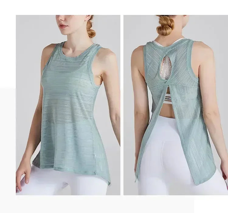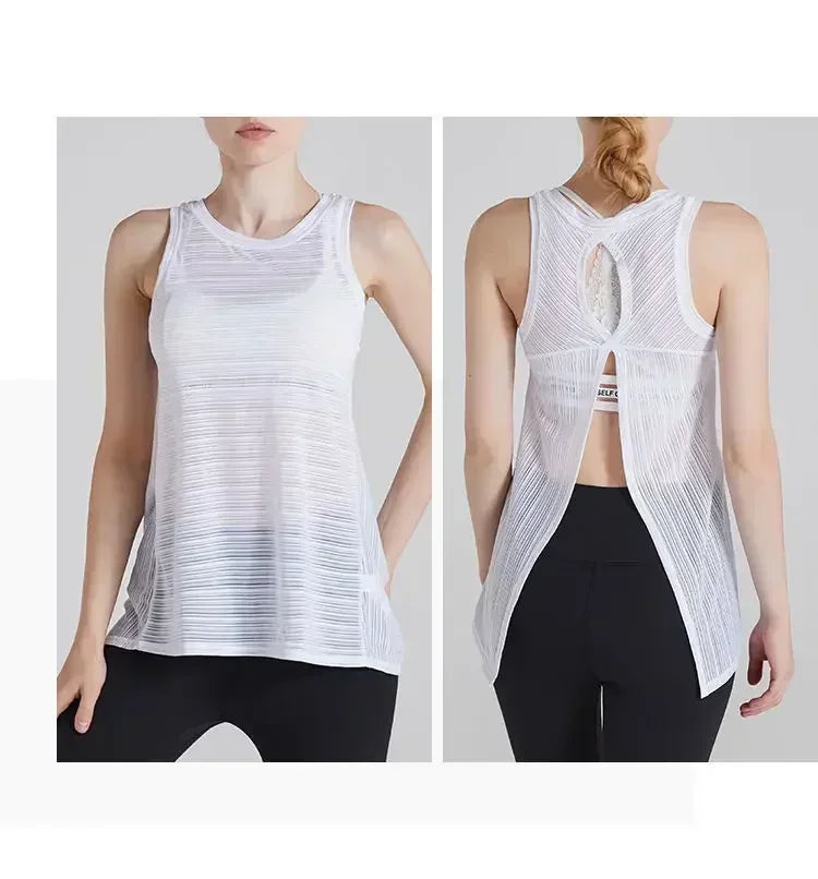 Sexy Sleeveless Backless Sports T-Shirt Women's Gym Tank Top Loose Sportswear Breathable Workout Tank Top Fitness Yoga Dance