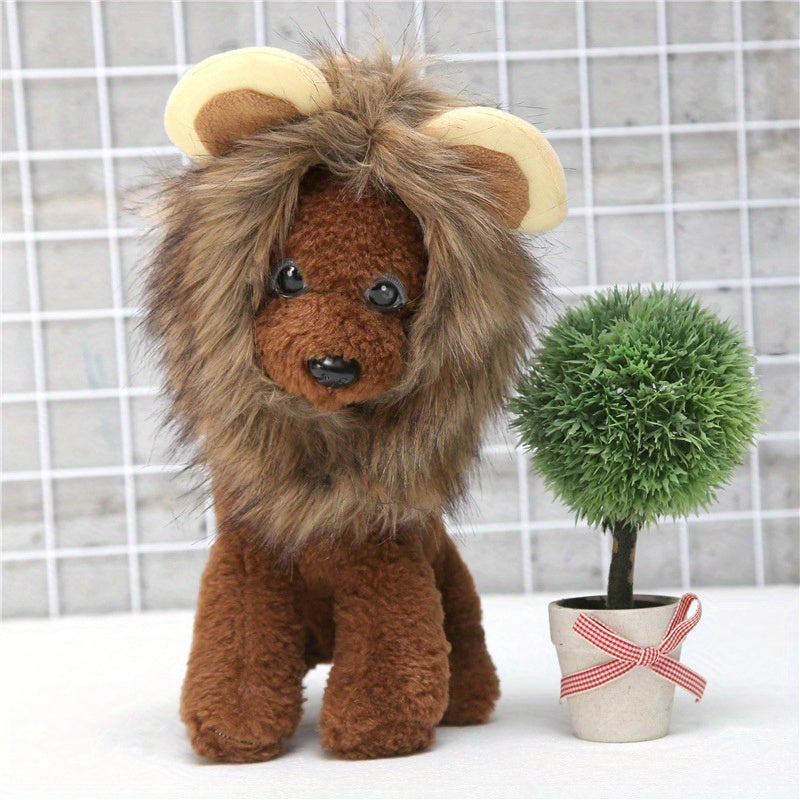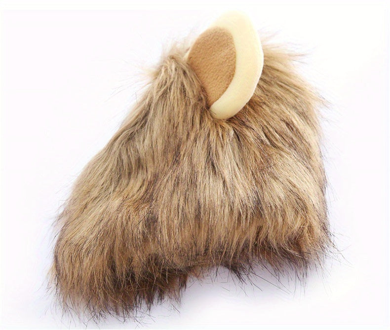 1pc Adjustable Lion Mane Wig Cap for Puppies & Kittens - Cozy Polyester Pet Headgear with Ears - Ideal for Autumn & Winter Photo Shoots, Christmas & New Year Decorations - For Pet Owners - Fun & Festive Pet Accessory - Perfec