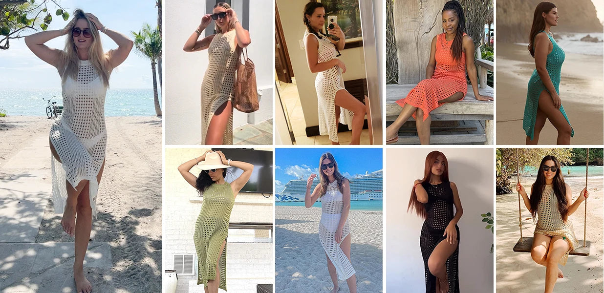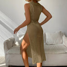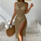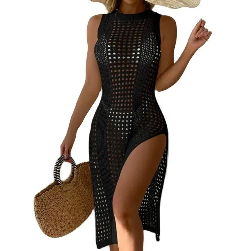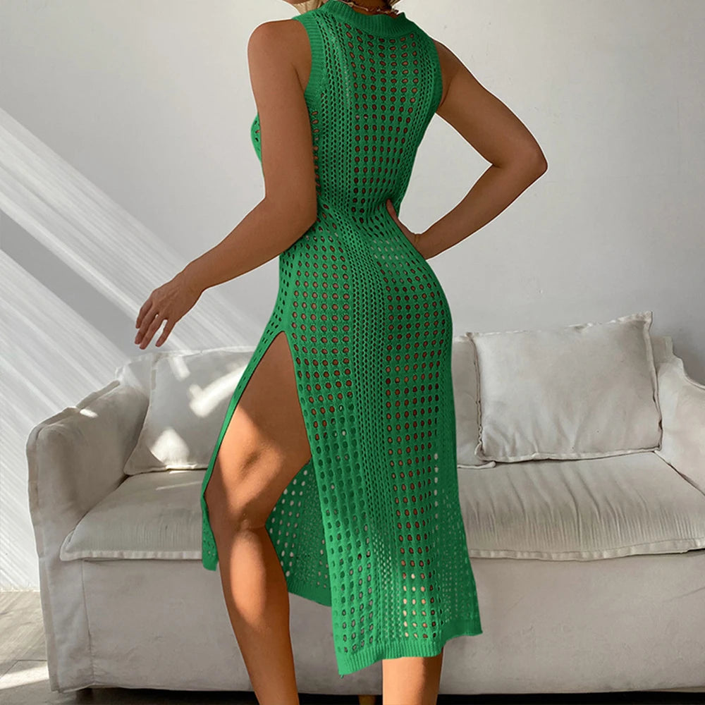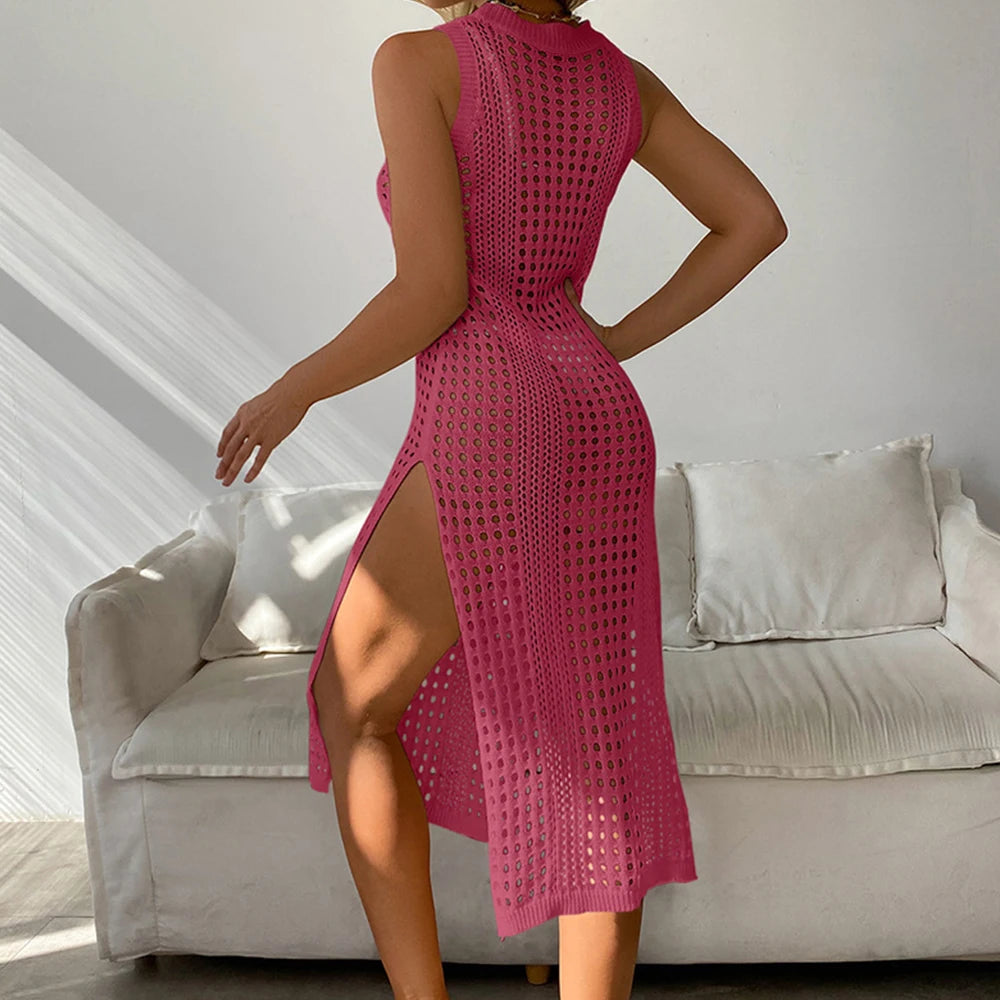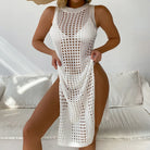 2024 Women Swimsuits Cover Ups Crochet Bathing Suit Hollow Out Bikini Coverup Beach Swimwear Sleeveless Side Split Beach Dresses