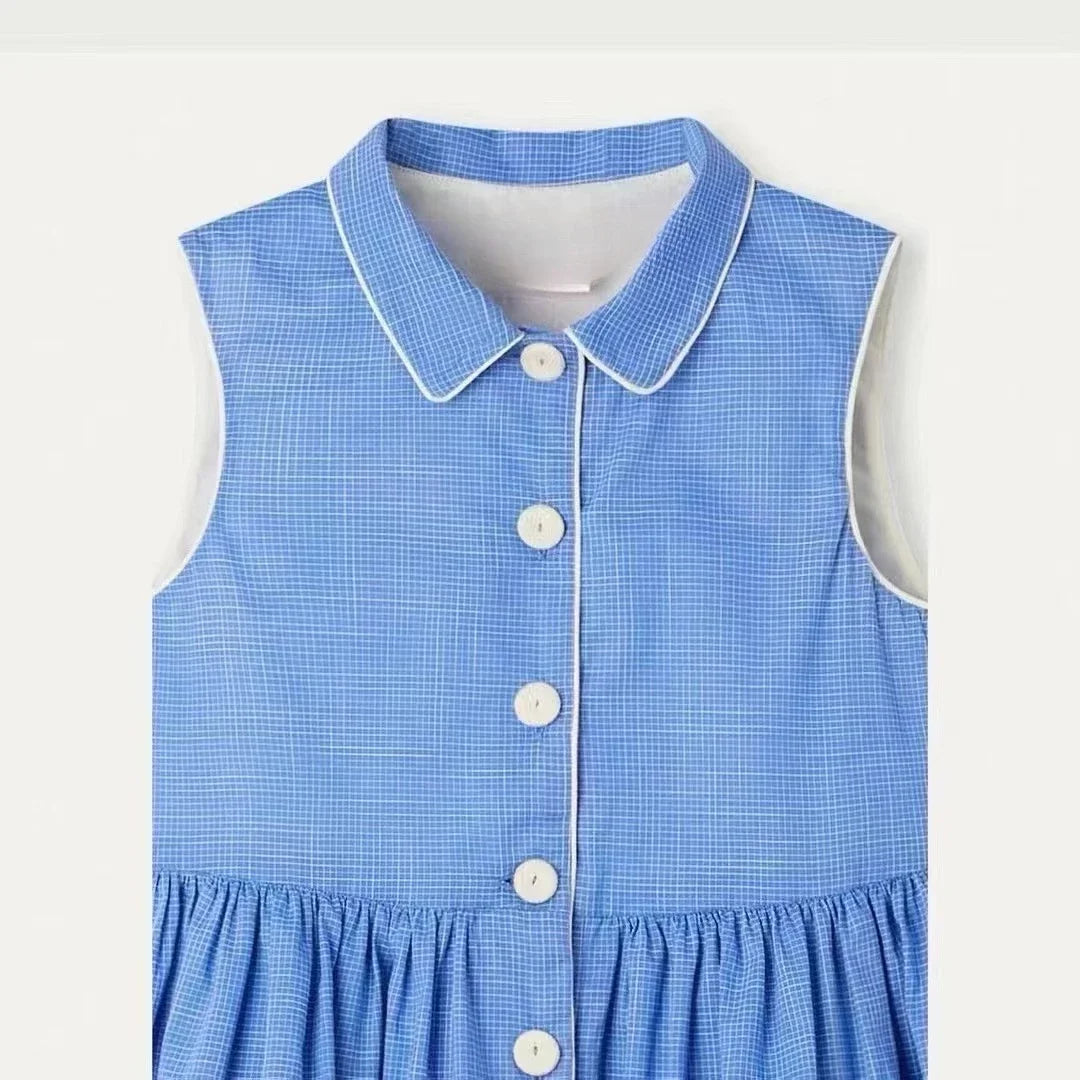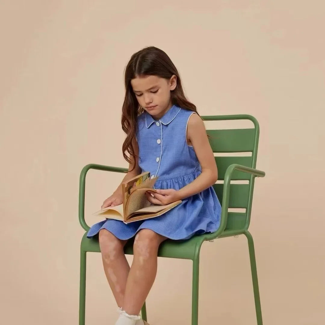 2025 New Kids Clothes Daily Wear Smocked Girls Dress Cotton ChildrenVacation Outfits Summer Casual Green Dresses Matching