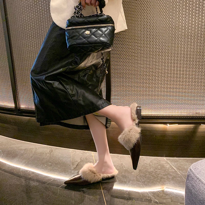 2025 New Shoes for Women House Slippers Platform Fur Flip Flops Slides Loafers Cover Toe Low Plush New Flat Basic Женская Обувь