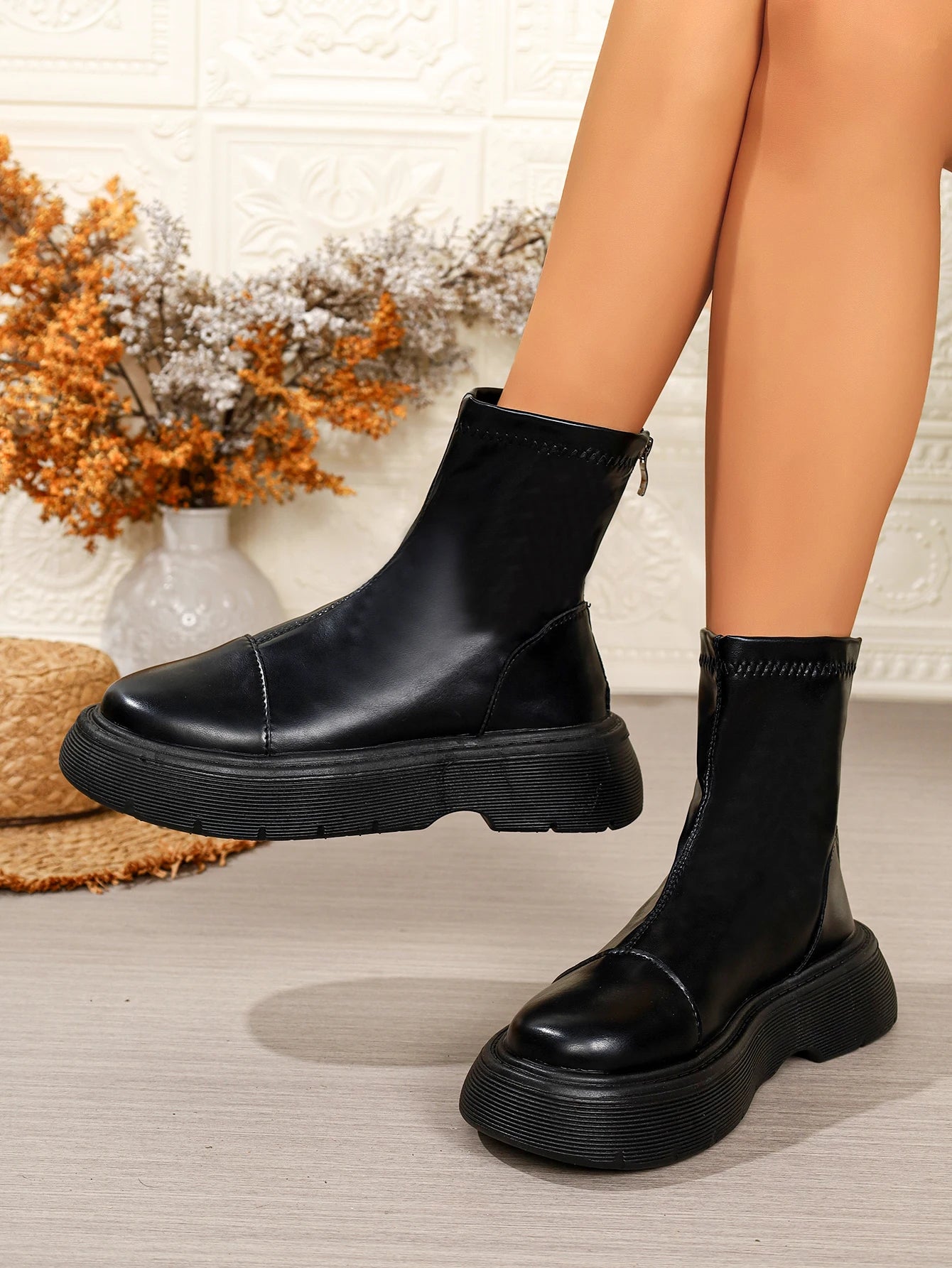 2026 Women Suede Modern Ankle Boots Plush Mid Heels Shoes Winter Trend Office Chunky Shoes Fashion Walking Non Slip Botas Mujer