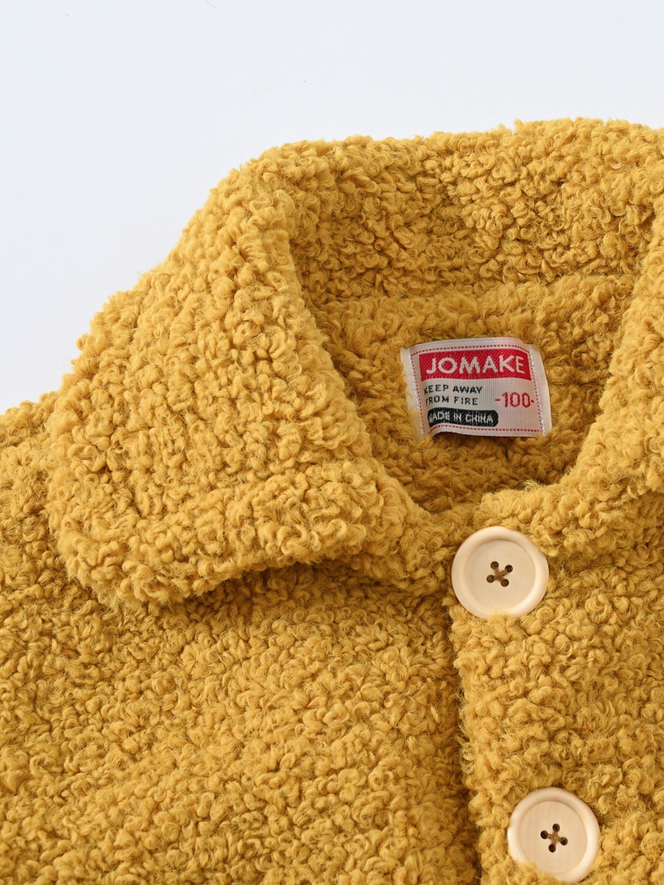 [Cozy Fleece Jacket] Cozy Fleece Jacket for Girls - Two-Tone Color Block with Plush Lining, Long Sleeves & Button Front, Casual Korean Style Winter Outerwear | Button-Up Front Jacket | Plush Lining Jacket