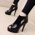 [High Heels, Pumps] Black High Heels, Women's Platform Stiletto Heeled Cut Out Pumps | Peep Toe Fashion Footwear