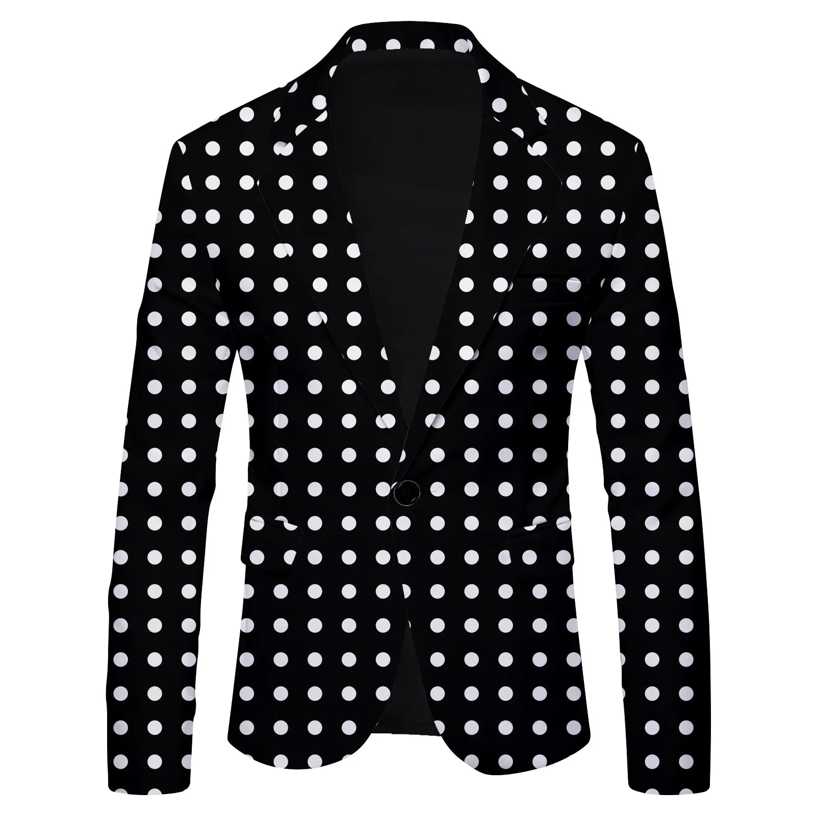 HOO 2025 New Men's Polka Dot Print Leisure blazer Jacket British Fashion Slim-Fitting blazer Pattern Customization