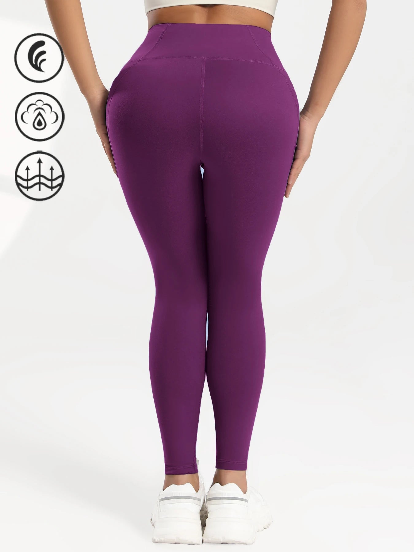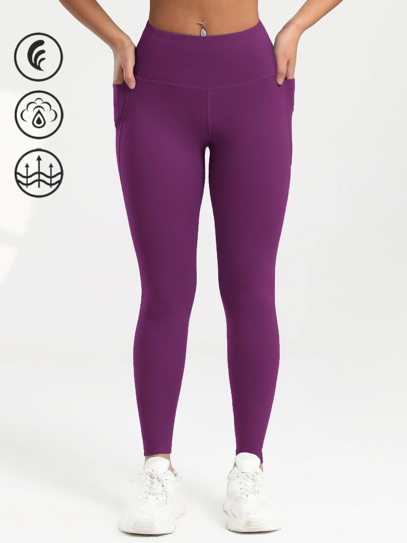 Yoga Pants with Pockets Tummy Control Butt Lifting Fitness Tights Women Solid Color Workout Leggings Sportswear